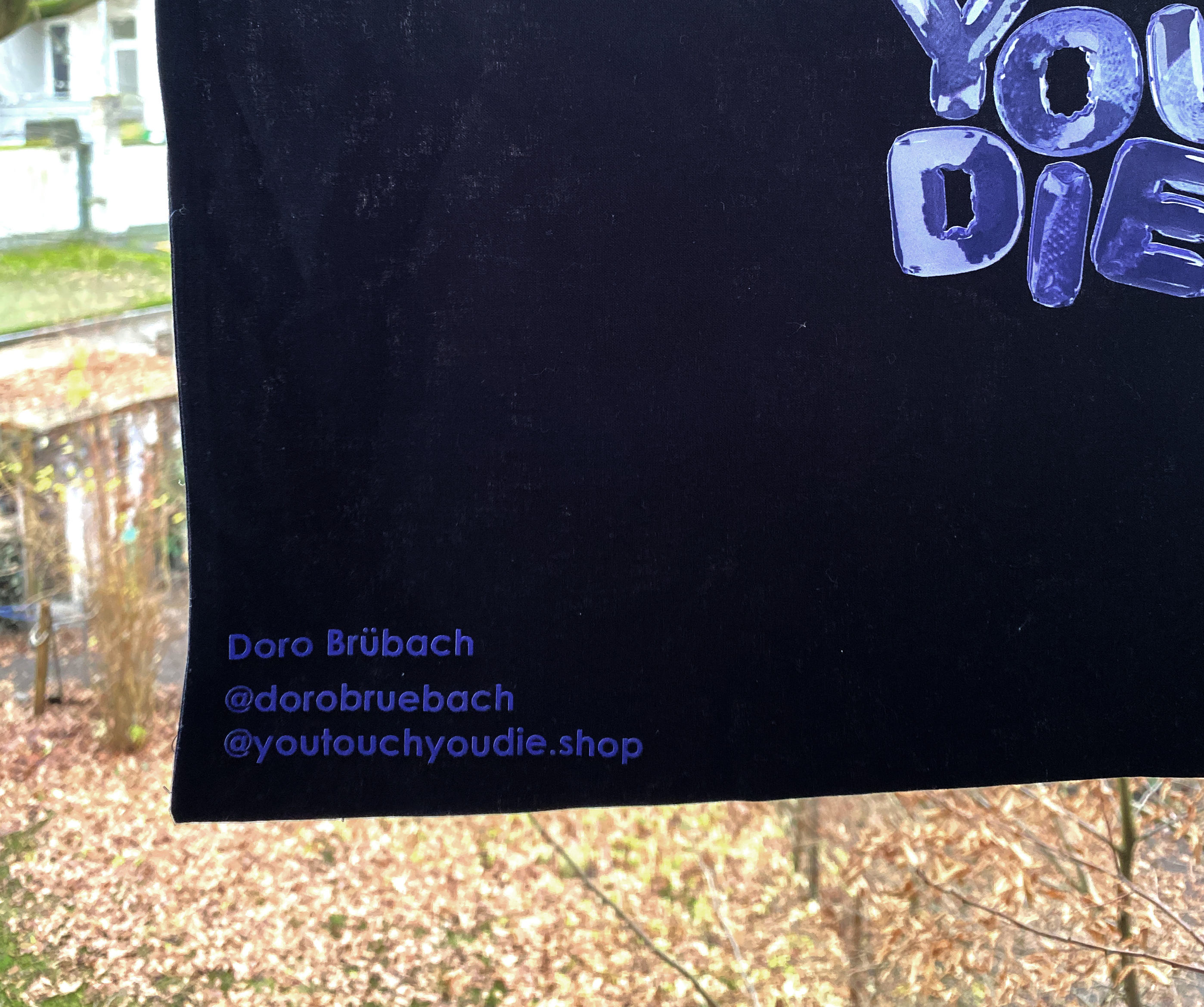 schwarzer Beutel mit blauem Druck (ausverkauft)
