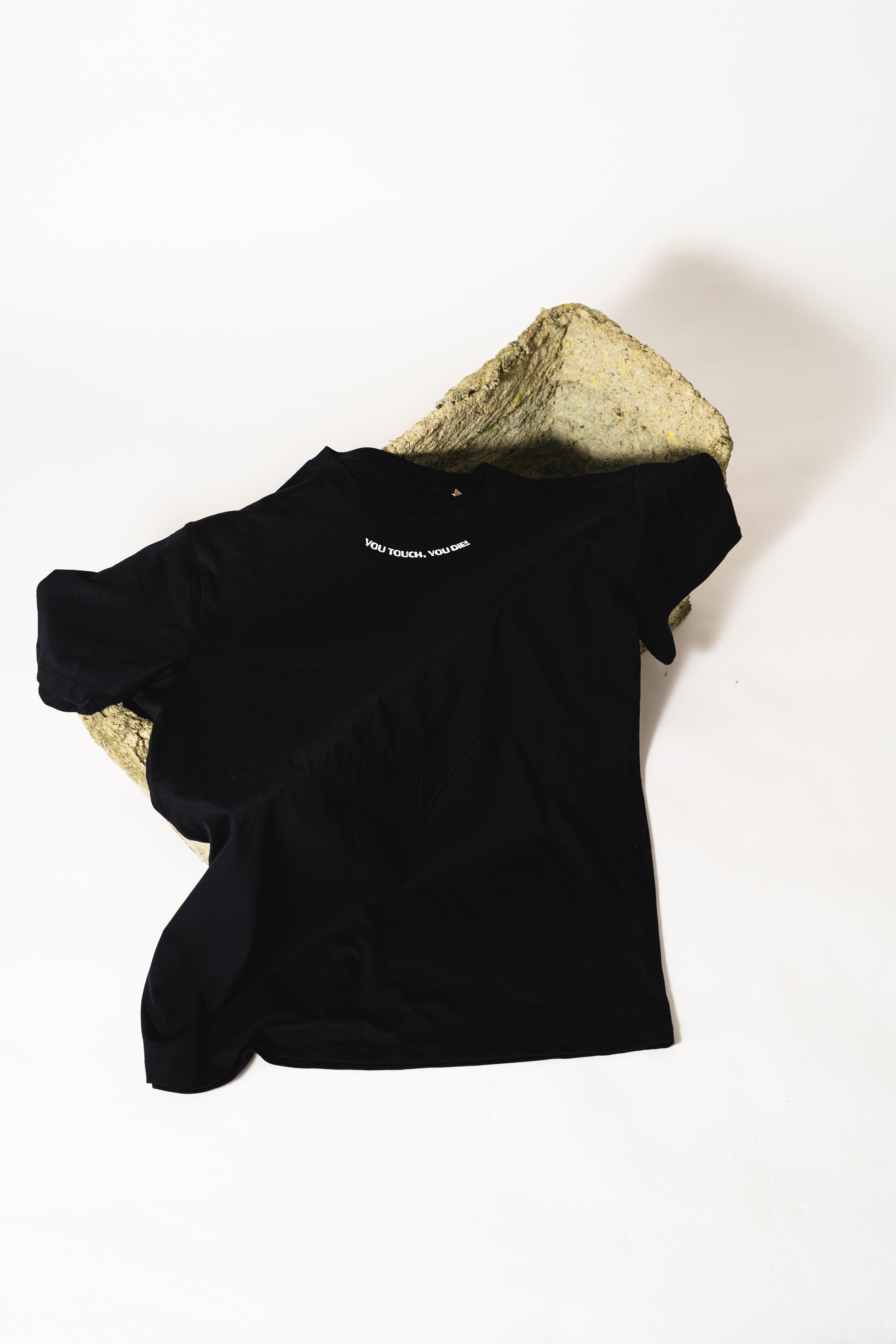 Veganes, unisex T-Shirt aus Bio-Baumwolle. Kleiner Front- und rückenfüllender Backprint. Das Shirt ist handbedruckt von No Collar Siebdruck in Kiel.